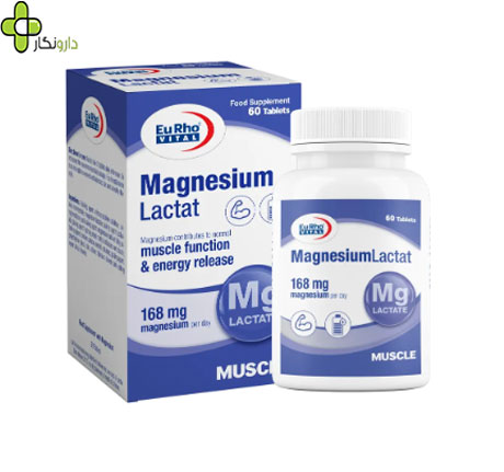 قرص منیزیم لاکتات یوروویتال حاوی 168 میلیگرم منیزیم به فرم لاکتات است که عملکرد سیستم عصبی و عضلانی را بهبود میدهد.